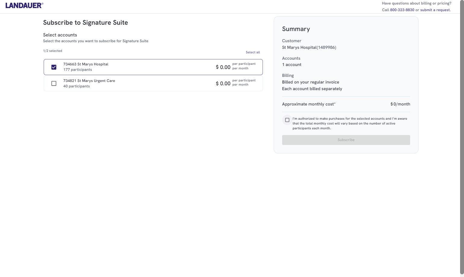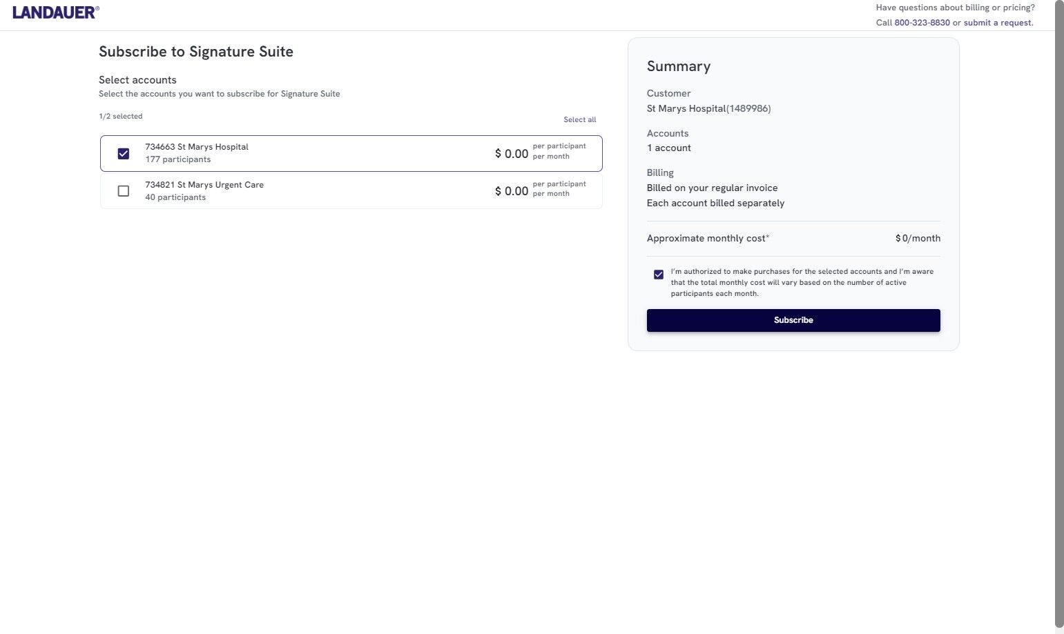 11. Click "Subscribe" to complete subscription and to send a proof of purchase notification to your RSO.