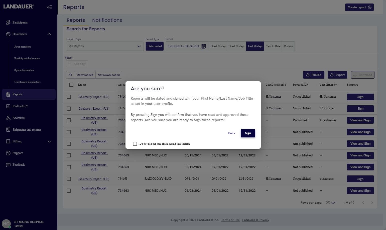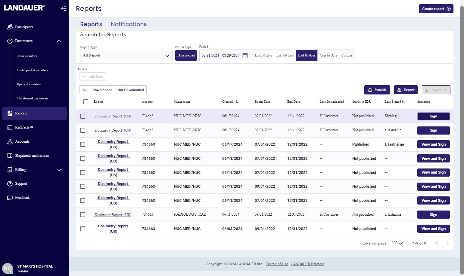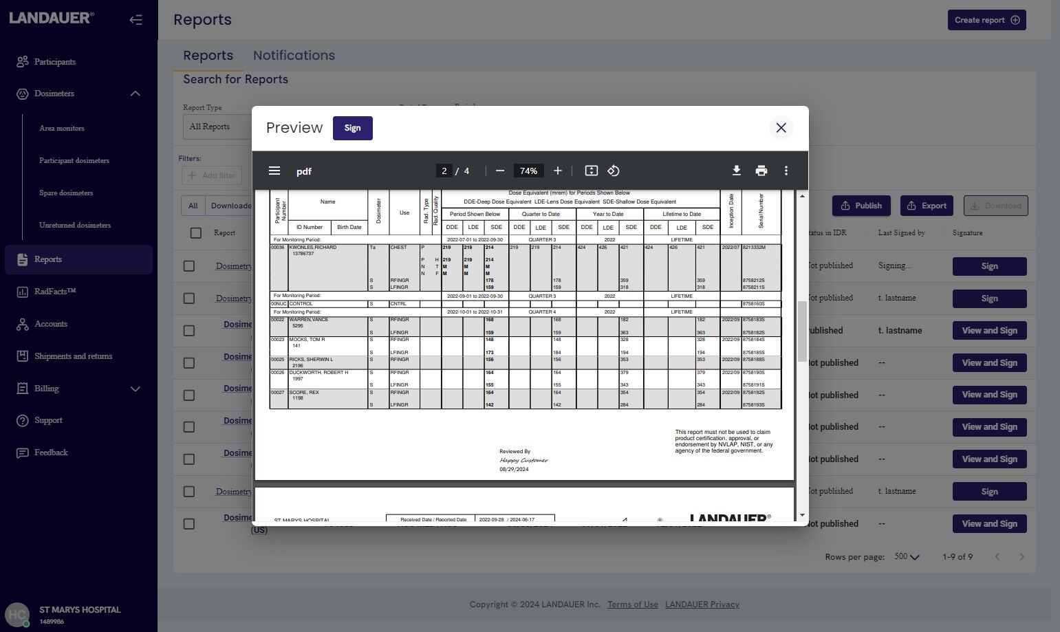 12. Back on the reports page, you can now start signing the eligible reports by clicking "Sign" (for reports that are already downloaded) or "View and Sign" (for reports that ain't downloaded yet)